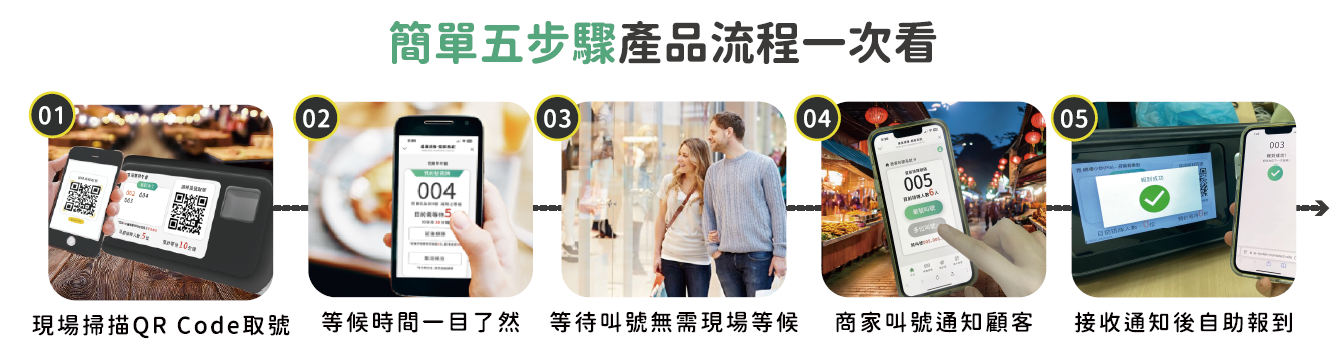 - 商家後台管理系統:一鍵叫號、服務人數統計、號碼與動線管理。